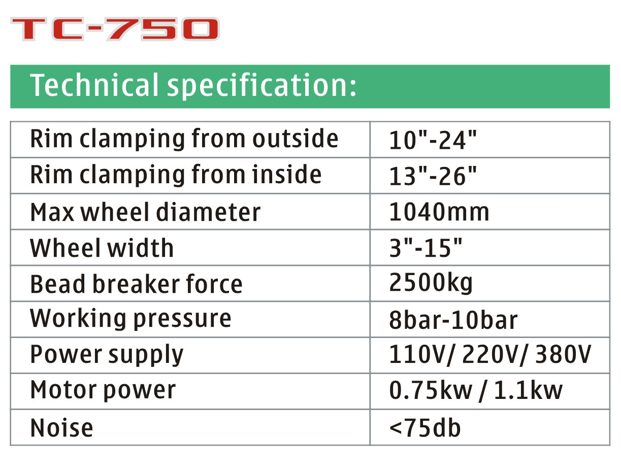 مغير الإطارات TC-750 / مبدل إطارات السيارة / آلة تغيير الإطارات / آلة الإطارات