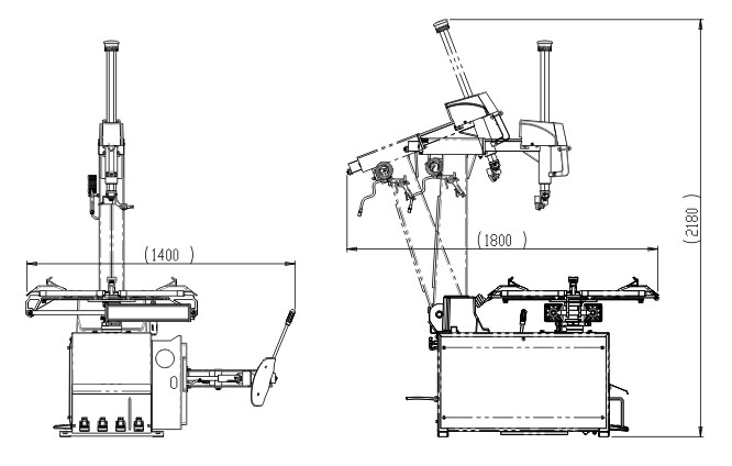 1) مبدل الإطارات الأوتوماتيكي ، يمكن إتمام إمالة العمود للخلف والأمام وقفل العمود بالهواء المضغوط.