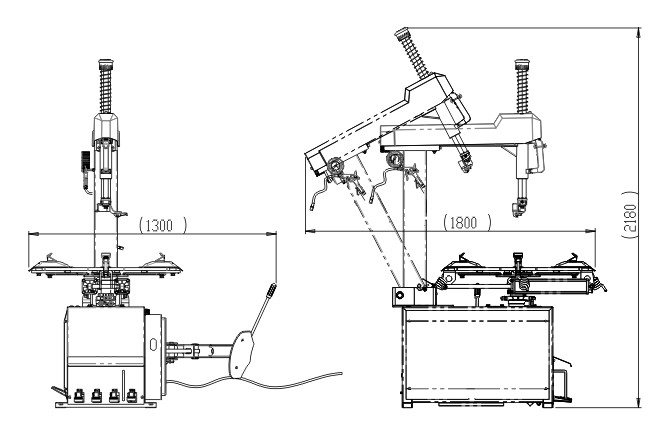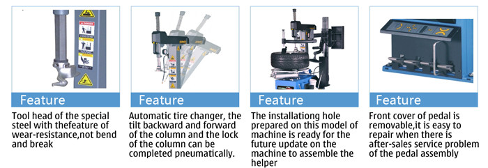 1) مغير الإطارات الأوتوماتيكي ، إمالة العمود للخلف وللأمام وقفل العمود يمكن أن تتنافس بالهواء المضغوط.