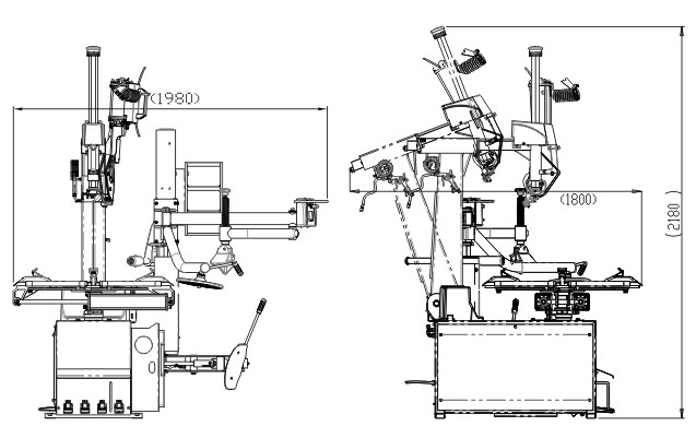1) مبدل الإطارات الأوتوماتيكي ، يمكن إتمام إمالة العمود للخلف والأمام وقفل العمود بالهواء المضغوط.