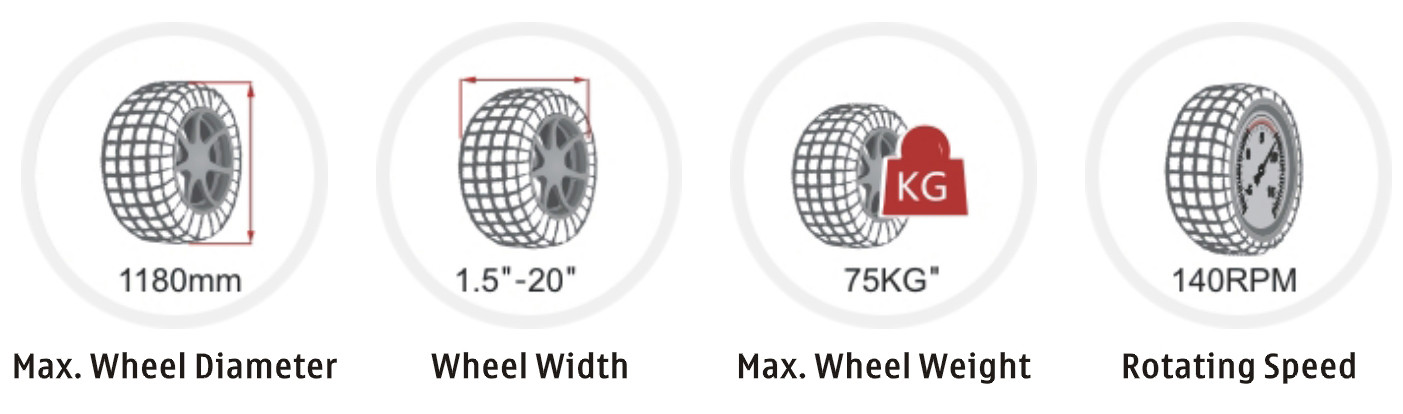 | قطر العجلة القصوى | 1000 مم | 1180 ملم | 1180 ملم | 1180 ملم | 1180 ملم |