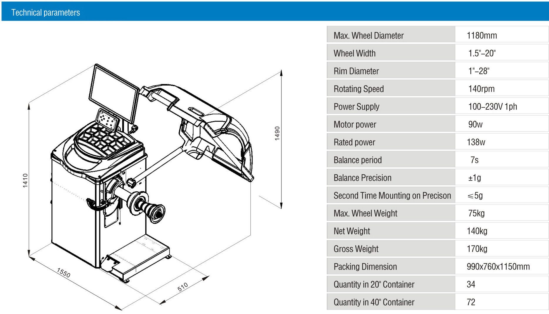 المواصفات الفنية لموازن عجلة LCD: