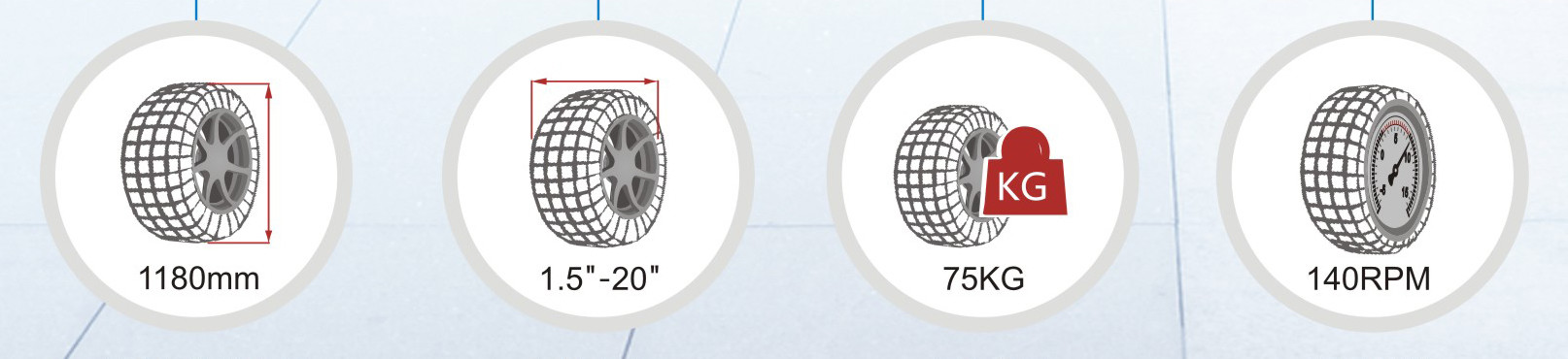 5. برغي رصاص قياسي 40 مم ، يمكن استخدام جميع ملحقات الموازن المشتركة.يمكن أن تنطبق على حافة العجلة 1-28 بوصة ، طول عمود التوازن 300 مم ، ينطبق أيضًا على الإطارات الخاصة.