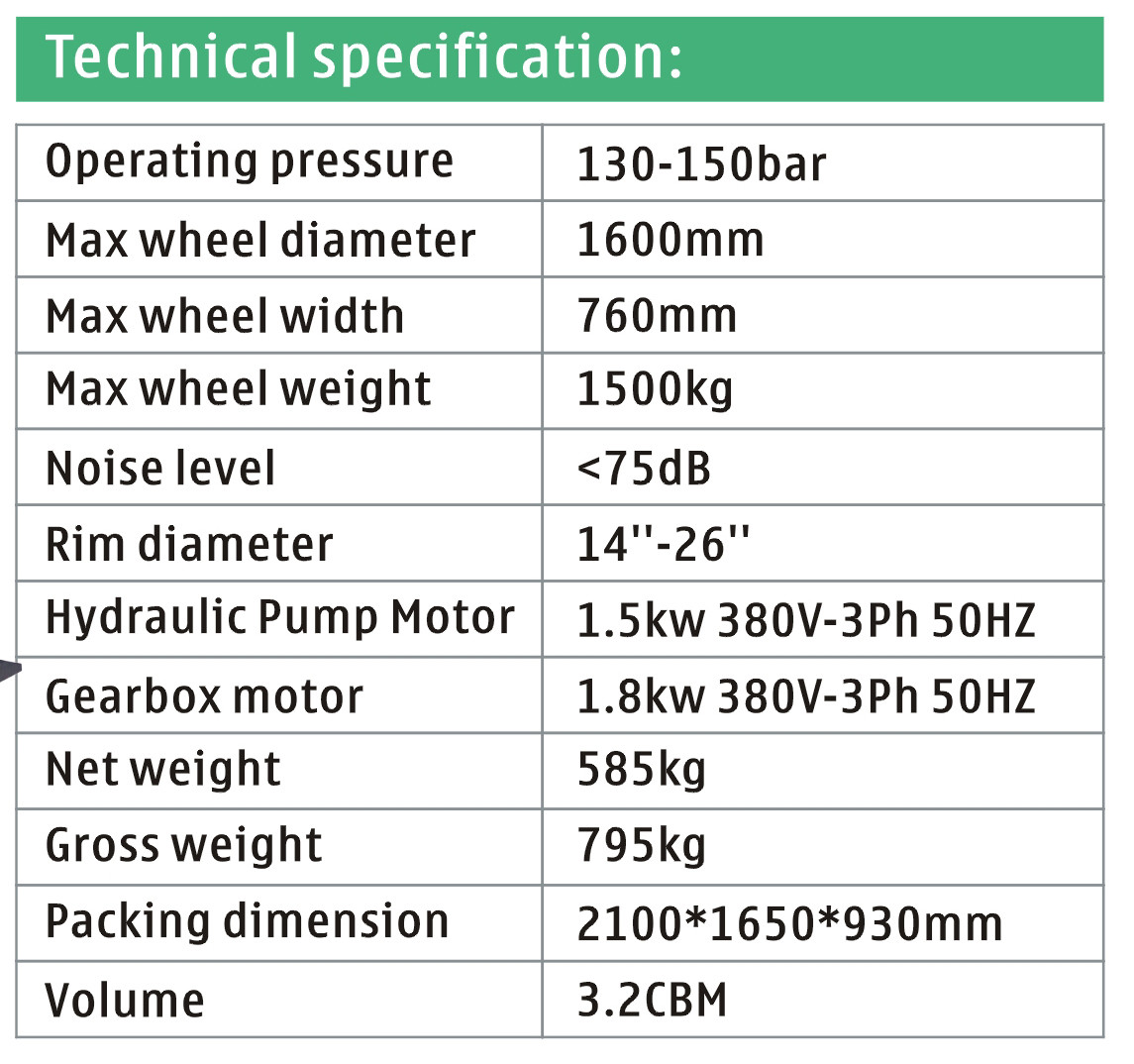 | أقصى وزن للعجلة | 1500 كجم | 1800 كجم |